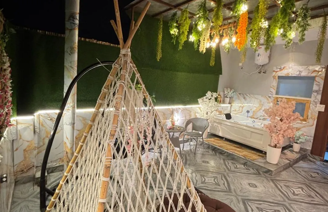 Located 3.9 km from the Aravalli Biodiversity Park, The Terrace Affair Studio With Jacuzzi Gurgaon is nearly a 25-minute walk from a top family-friendly place like the Smaaash. Wi-Fi and parking are also available at this apartment.